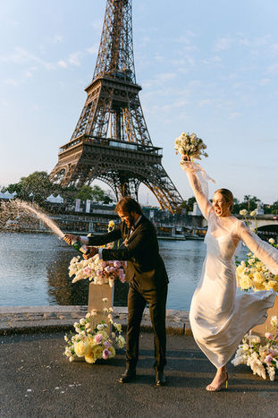 Photographiée à Paris, au pied de la majestueuse Tour Eiffel, cette robe célèbre l’amour, la féminité et l’élégance à la française — une ode à la mariée contemporaine rêvant d’un moment d’exception dans la ville des amoureux.